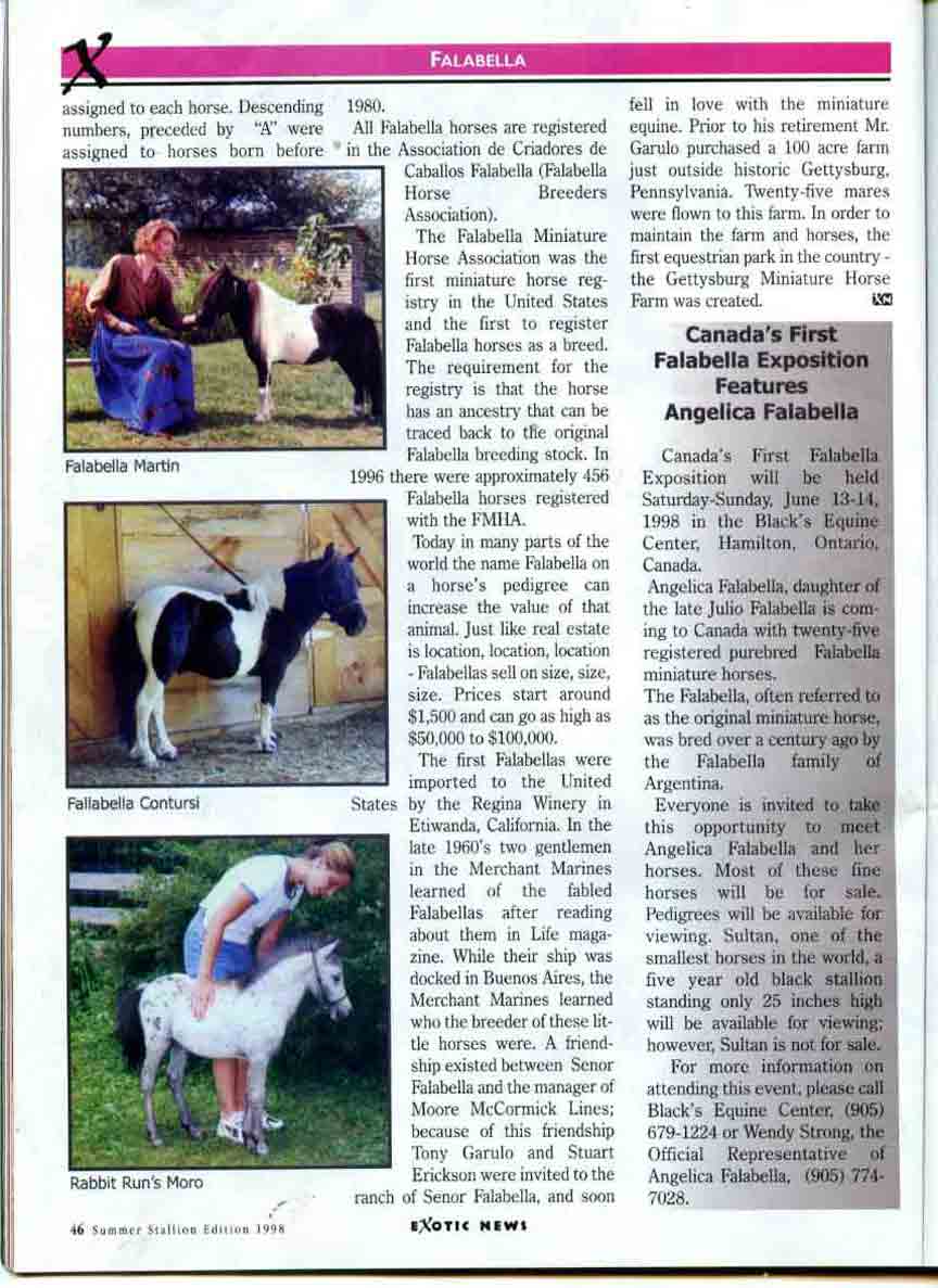 EXOTIC NEWS PUBLICATION - SUMMER 1998 EDITION, FEATURING AN IMPRESSIVE STORY ON THE FALABELLA